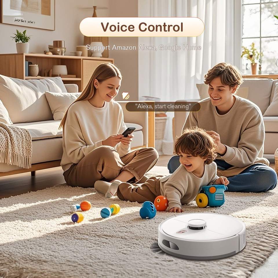 Potente Aspirapolvere Robotico 2000pa con Funzione 3-in-1: Aspirazione, Spazzatura e Lavaggio, Controllo Alexa/APP, Batteria 2500mAh per 120 Minuti di Utilizzo