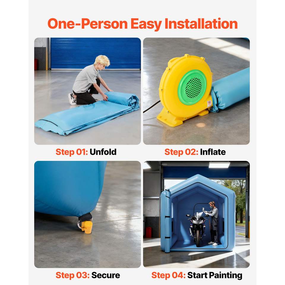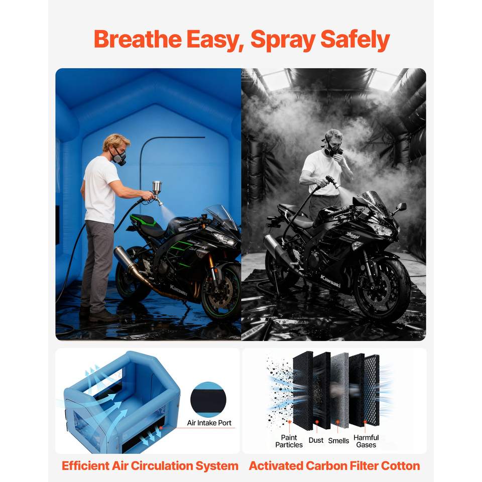 Potente Sistema di Filtraggio dell'Aria da 550W, Cabina Gonfiabile per Verniciatura a Spruzzo 9,84 X 8,2 X 8,2 ft, Forma Triangolare