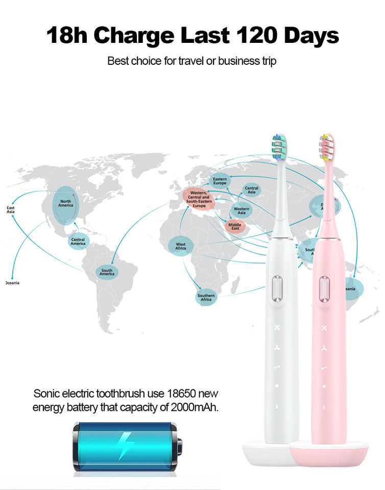 Potente spazzolino da denti ricaricabile senza fili USB spazzolino da denti sbiancante elettronico impermeabile spazzolino elettrico sonico ad ultrasuoni