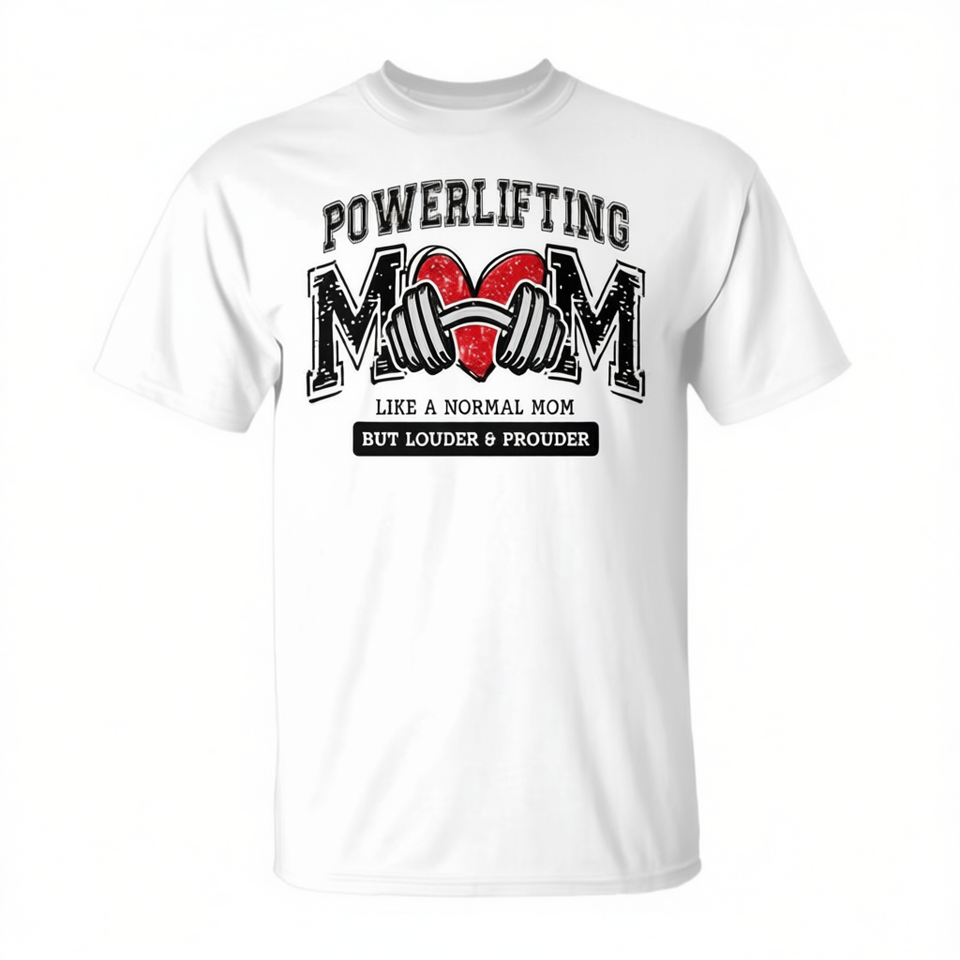 T-Shirt per la Festa della Mamma con Scritta 'Powerlifting Mom Heart', per Uso Promozionale