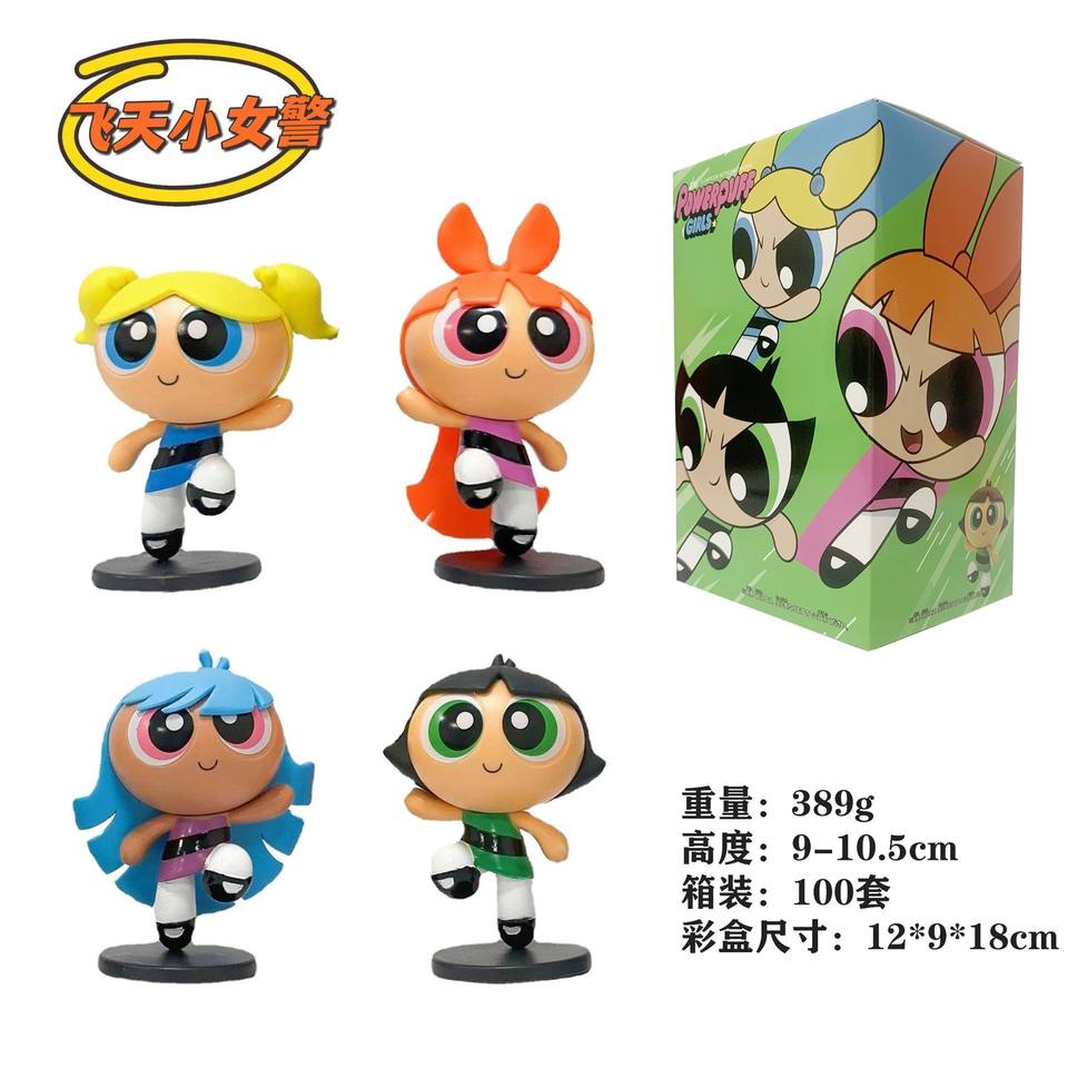Set di Personaggi Animati delle Powerpuff Girls per Quattro Persone: Blossom, Bubbles, Buttercup, Farfalle - Decorazione da Scrivania in PVC