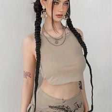 Poyed Double-Sided Hip Y2K Celebs Long Band Partial Wig Dyed with Human Hair