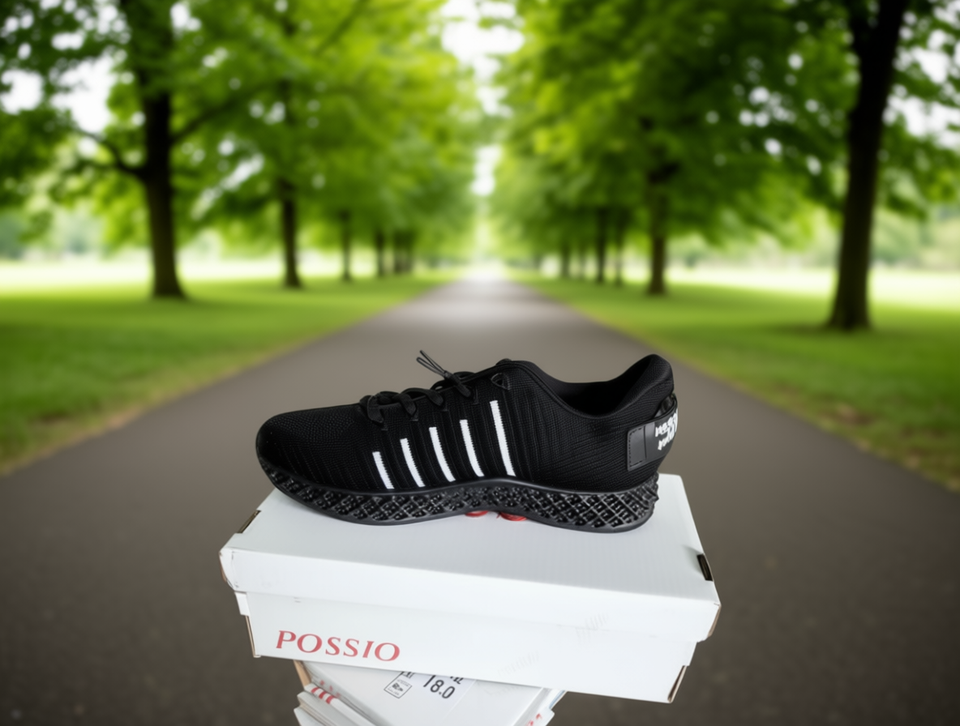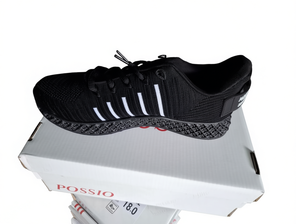 Scarpe da corsa Pozio da uomo, tomaia in rete nera, suola in gomma, misura 18.0, intersuola in EVA, abbigliamento sportivo per esterni