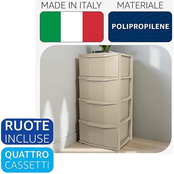 Cassettiera Pratika a 4 cassetti grigio tortora 37 x 37,5 x 80 cm in polipropilene con ruote