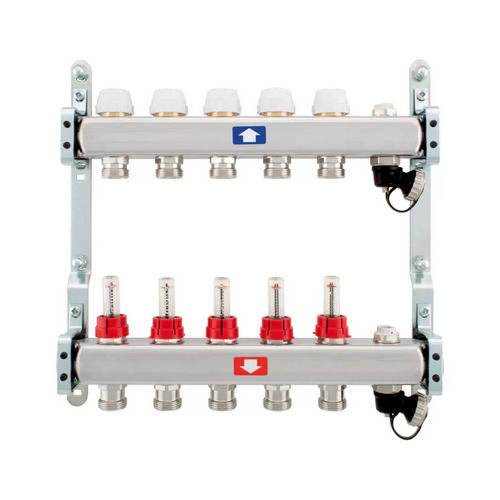Collettore preassemblato con flussometri, scarico e sfiato a 9 vie 1x3/4 per sistemi HVAC