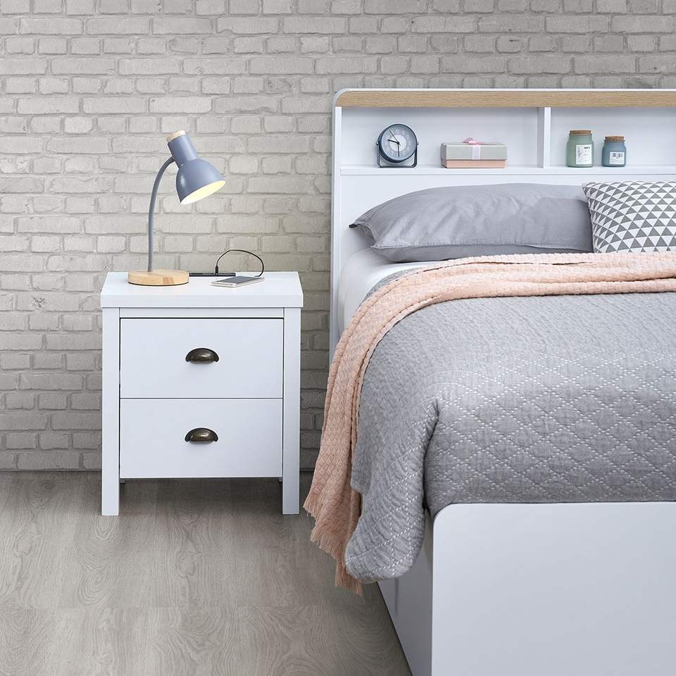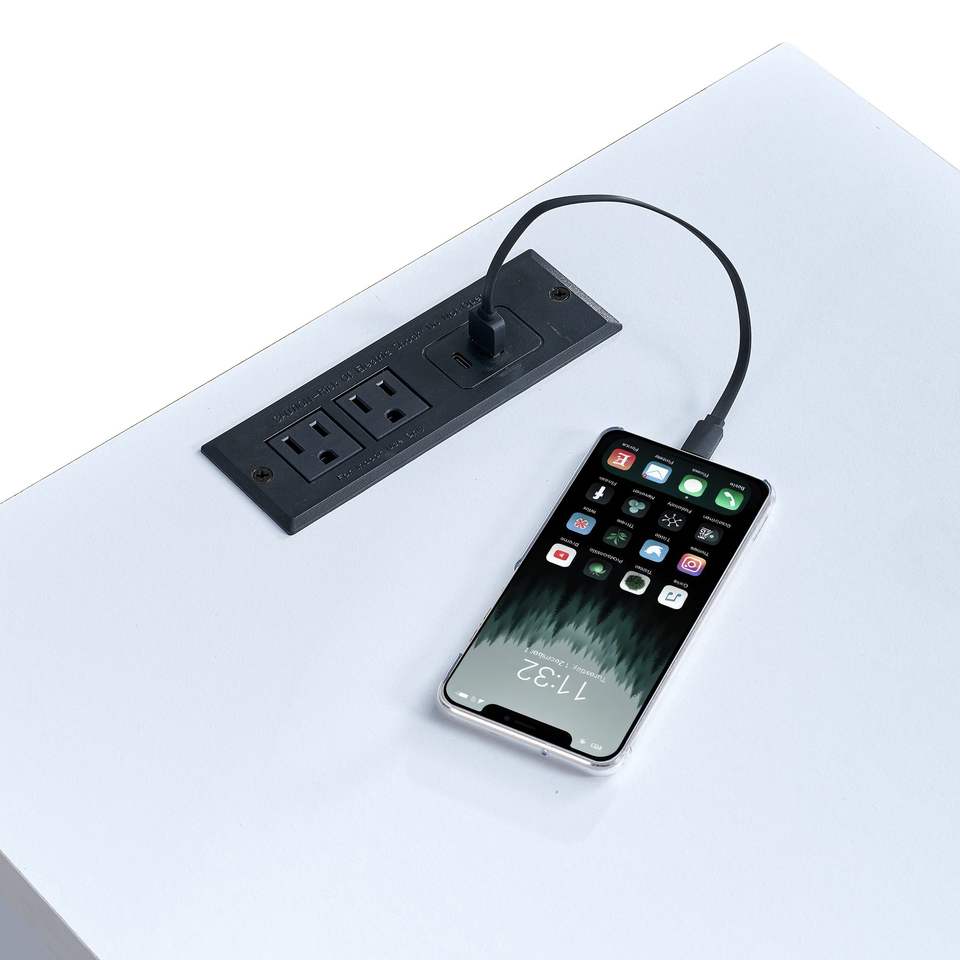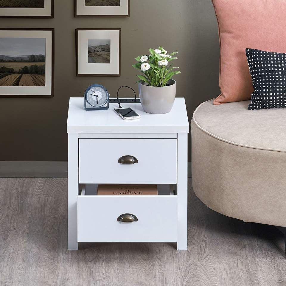 Comodino Preassemblato con Stazione di Ricarica USB Type-C e Cassetto Scorrevole per Camera da Letto o Soggiorno