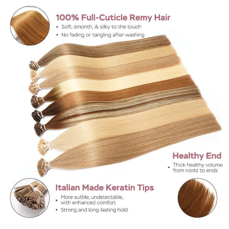 Extensioni di Capelli Umani con Punta Piatta Pre-Incollata, Morbide, con Cheratina Italiana, di Qualità Remy