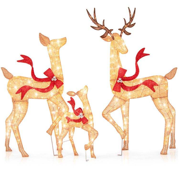 Set Famiglia di Cervi Natalizi Pre-Illuminati in 3 Pezzi