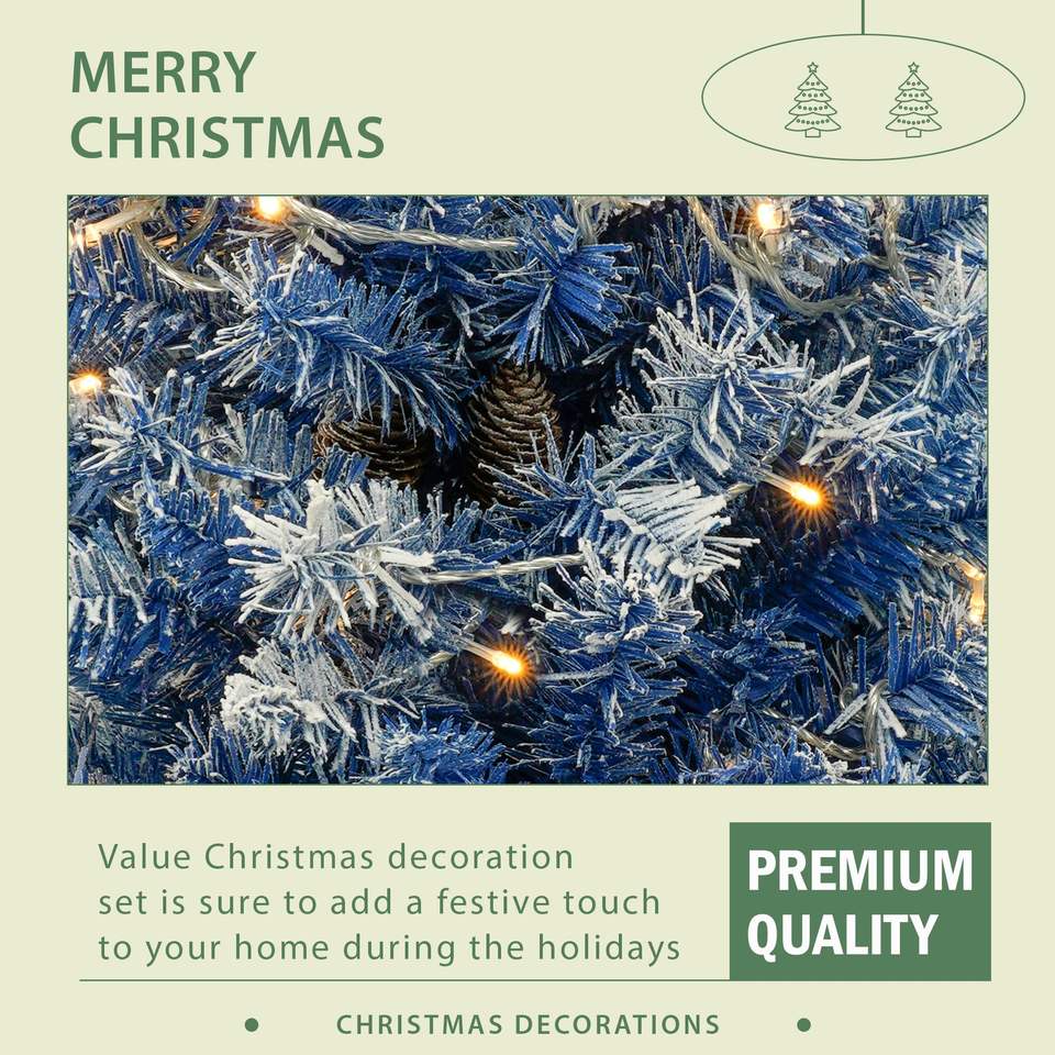 Set Natalizio Pre-Illuminato in 4 Pezzi: Albero di Natale Artificiale con Luci LED, Ghirlanda e Corona, Decorazioni per Ingressi