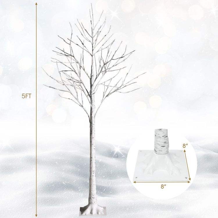 Albero di Natale Pre-Illuminato Bianco con Rami di Betulla, 1,5 Metri, con 72 Luci LED