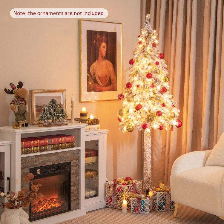 Albero di Natale a Matita Sottile Pre-Illuminato da 1,8 Metri con Effetto Neve - Elemento Decorativo Natalizio