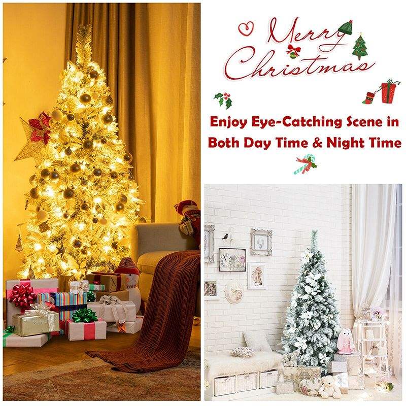 Albero di Natale Preilluminato con Effetto Neve, Bacche e Fiori di Poinsettia
