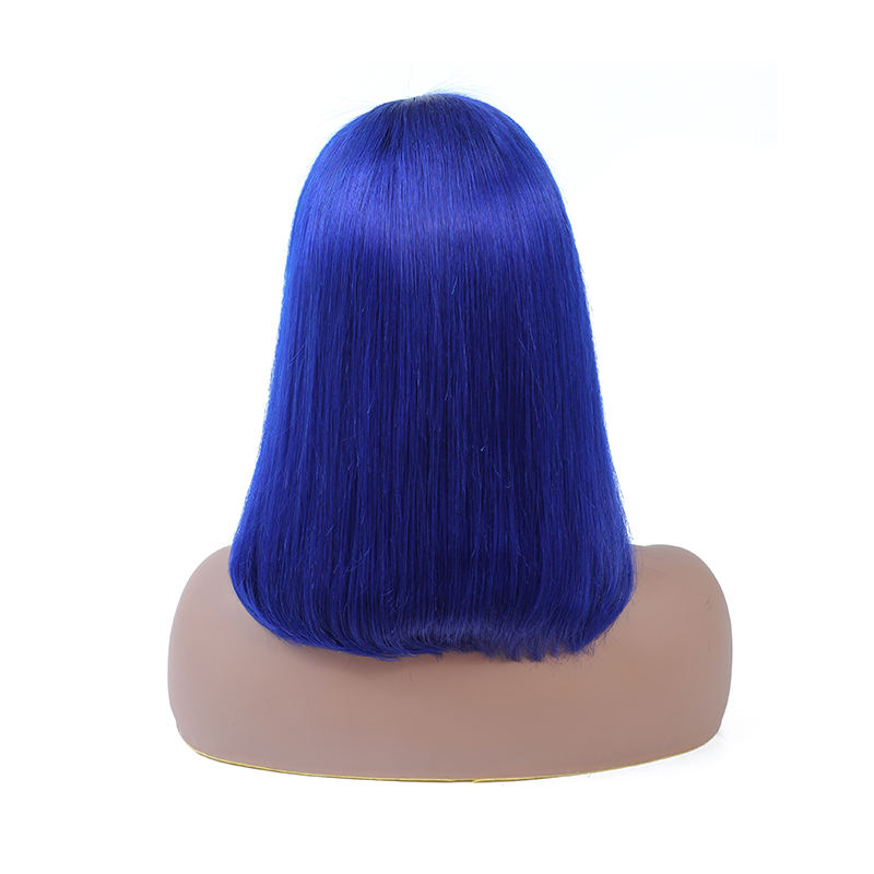 Pre Plucked 13x4 Remy Malaysian 150% Density Blue Human Hair Short Bob Wigs For Women