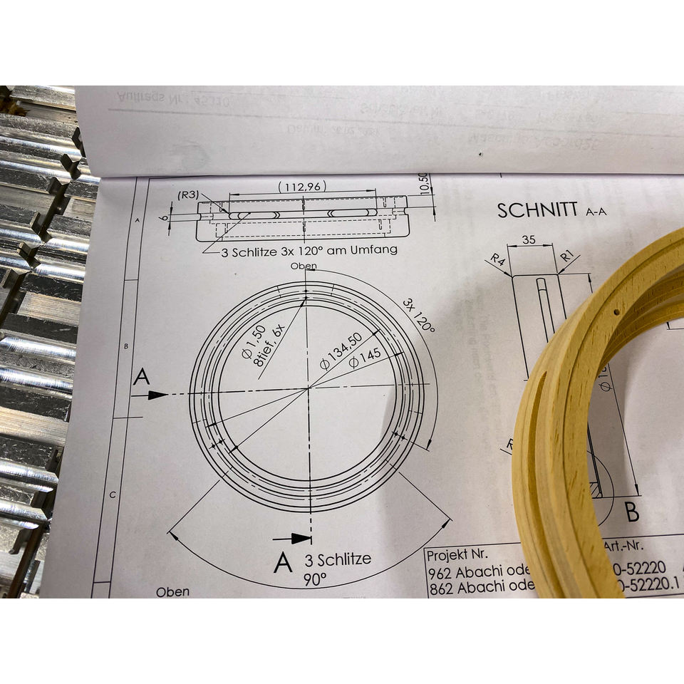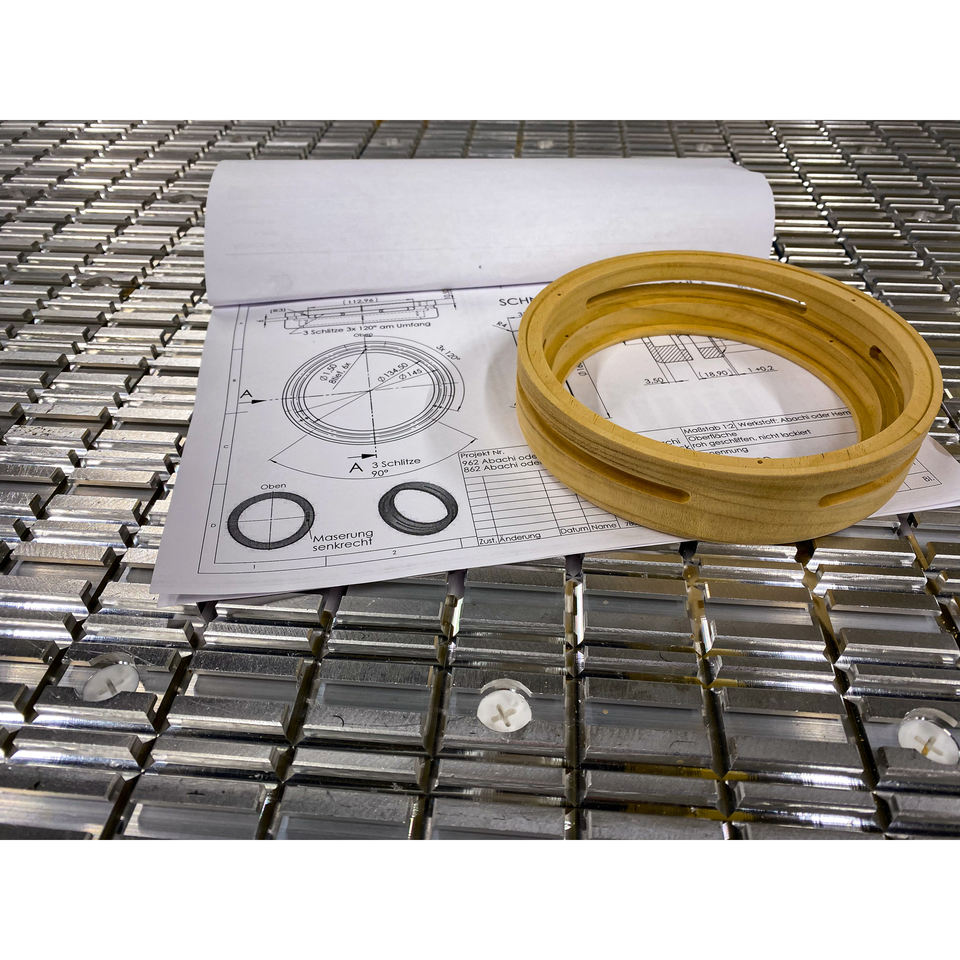 PARTI IN LEGNO INDIVIDUALI Precisamente realizzati con tecnologia CNC a 5 assi: Involucro in legno per igrometro da sauna (copi