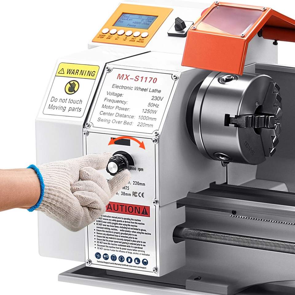 Tornio di Precisione in Metallo Senza Spazzole 1250W, 8.7 X 18 Pollici, Alimentazione Automatica, Velocità Variabile 0-2500 RPM per Lavorazione del Legno