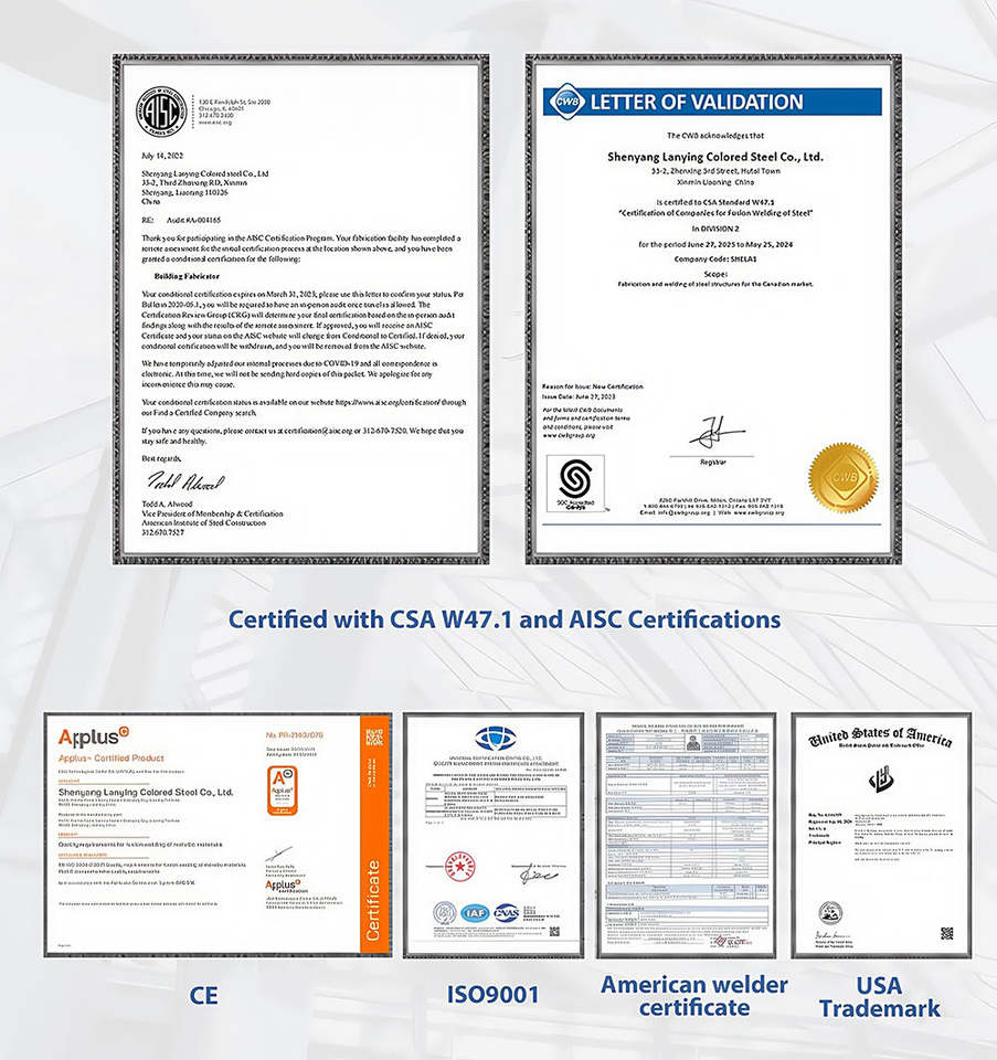 Certificato:ISO9001:2008/CE/BV/CWB Officina Prefabbricata in Struttura d'Acciaio