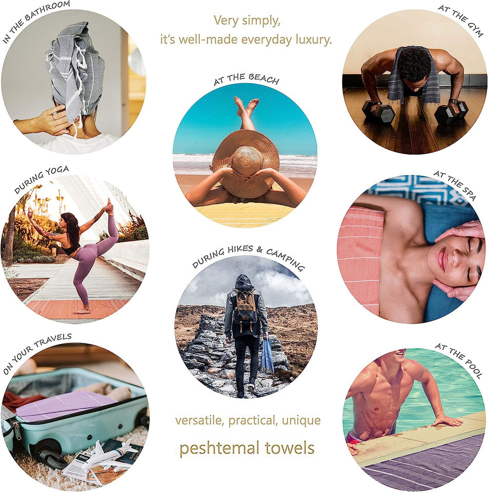 Asciugamano turco in cotone 100% Premium con nappe a secco rapido senza sabbia e leggero per spiaggia, bagno e piscina