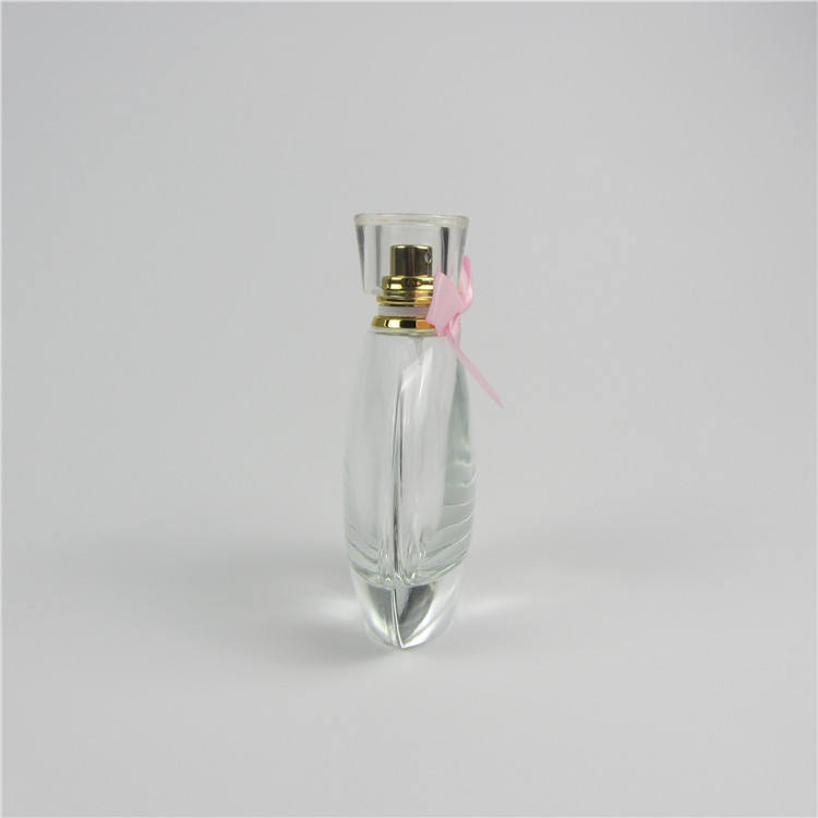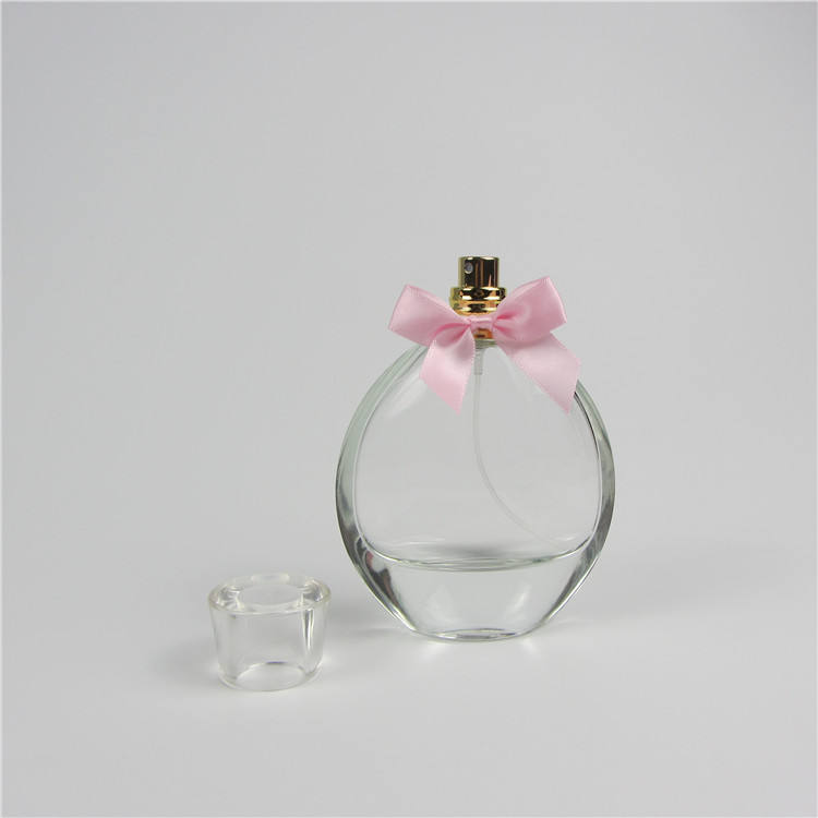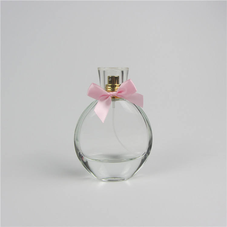 Flacone di Profumo Premium in Vetro Trasparente da 100 ml con Fiocco Rosa