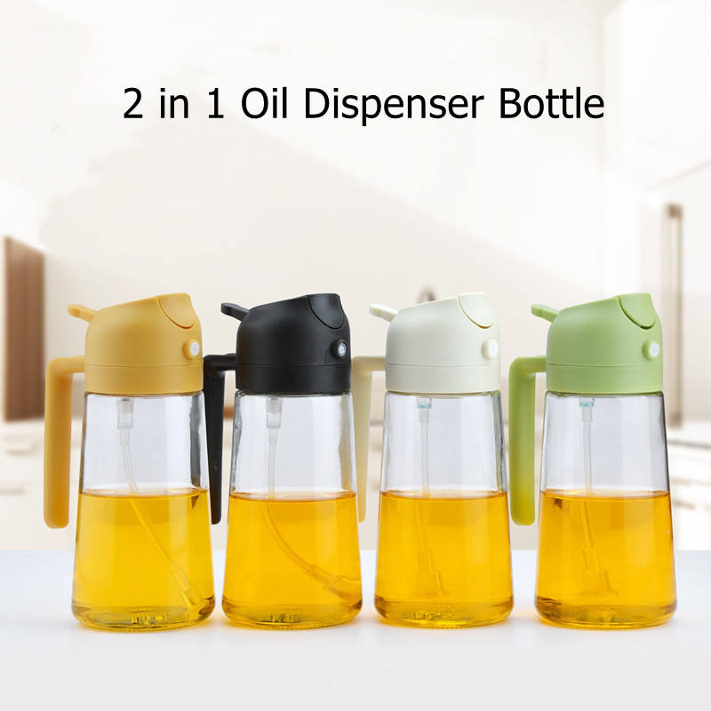 Bottiglia spray per olio in vetro tonda 2-in-1 per cucina e servizio olio d'oliva, con pennello in silicone