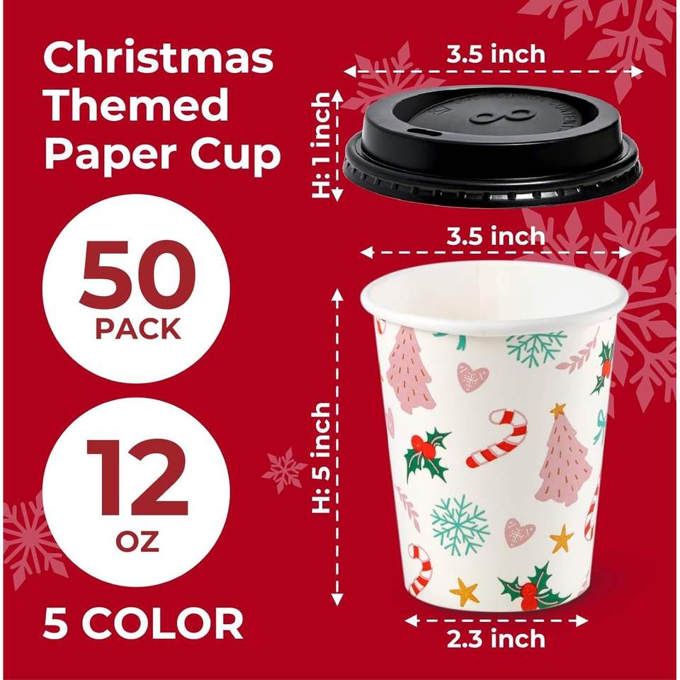 Confezione Premium da 50 Tazze da Caffè Usa e Getta da 350 ml con Coperchi, Antigoccia, in Carta, per Ufficio e Viaggio