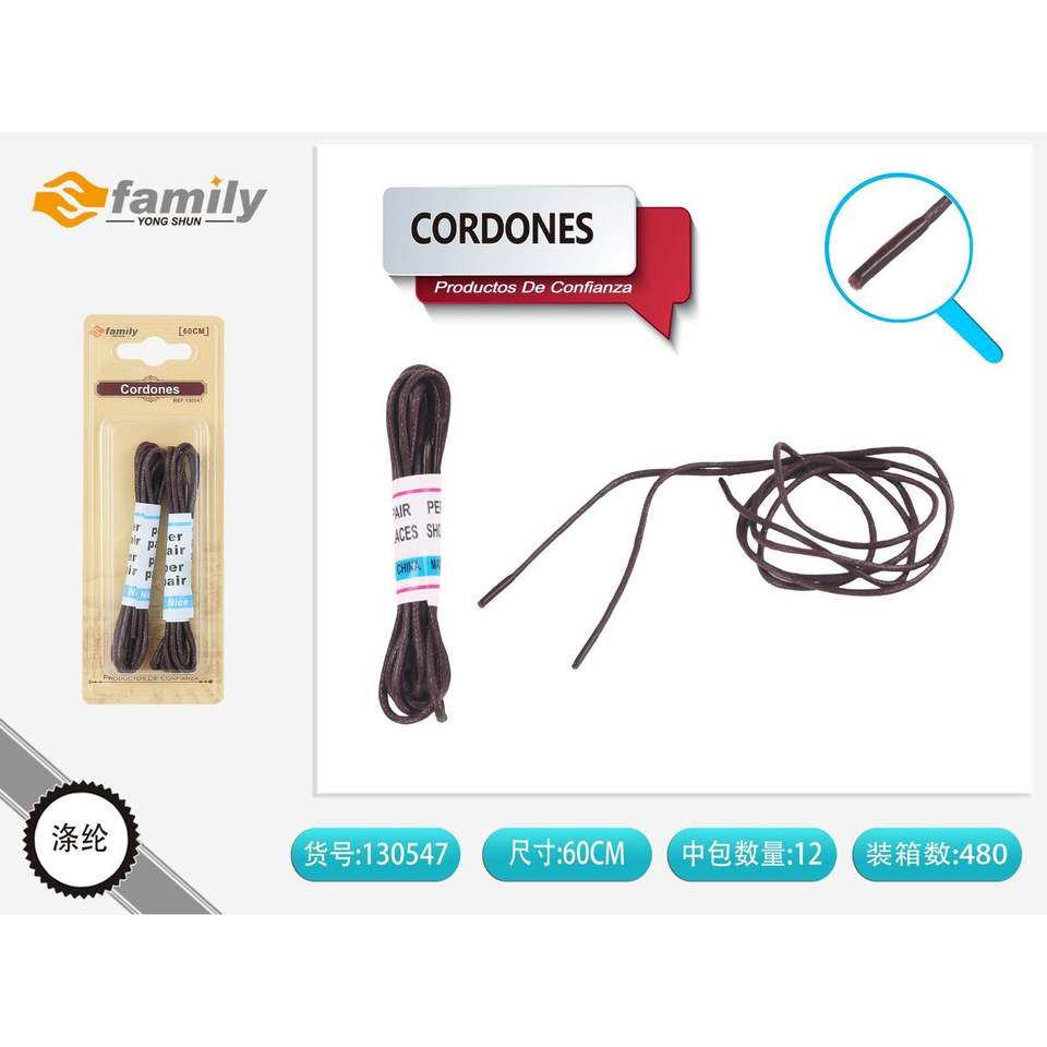Premium 70cm Brown Wax Laces in Pair Made of Nylon Metal Polyester Cotton-Free Sample Shoe Accessories