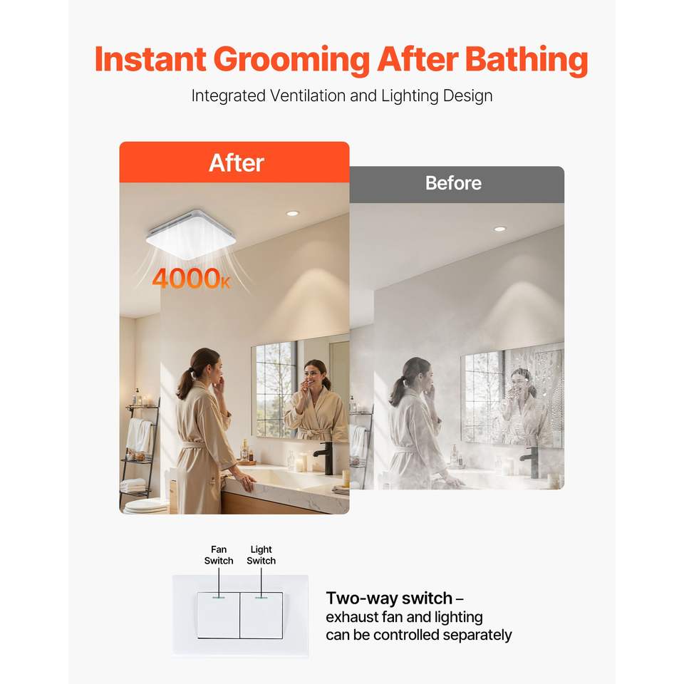 Ventilatore da soffitto premium con luce LED 4000K, 80 CFM, motore silenzioso da 1,5 Sones, per bagno e lavanderia
