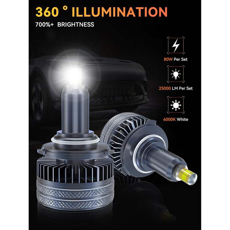 BULLNUXI 9005 HB3 LED Fog Light Bulbs 80W 6000K 25000lm 12V Universal Fit Premium Pack of 2