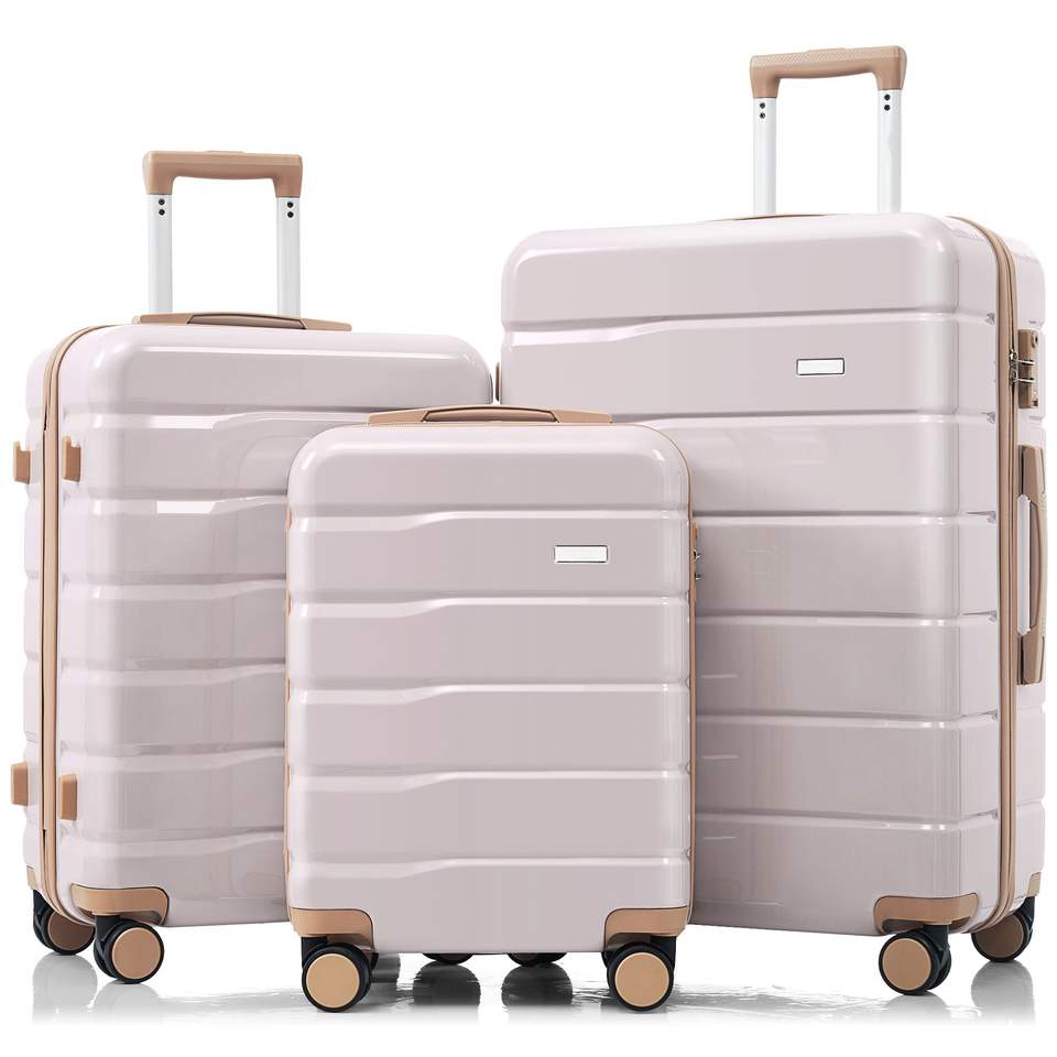 Premium ABS 3-Piece Travel Luggage Set with TSA Lock 20 24 28 Inch Sizes 360 Degree Spinner Wheels Light Grey Golden Ensemble