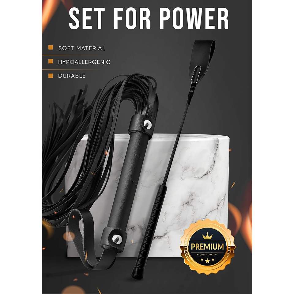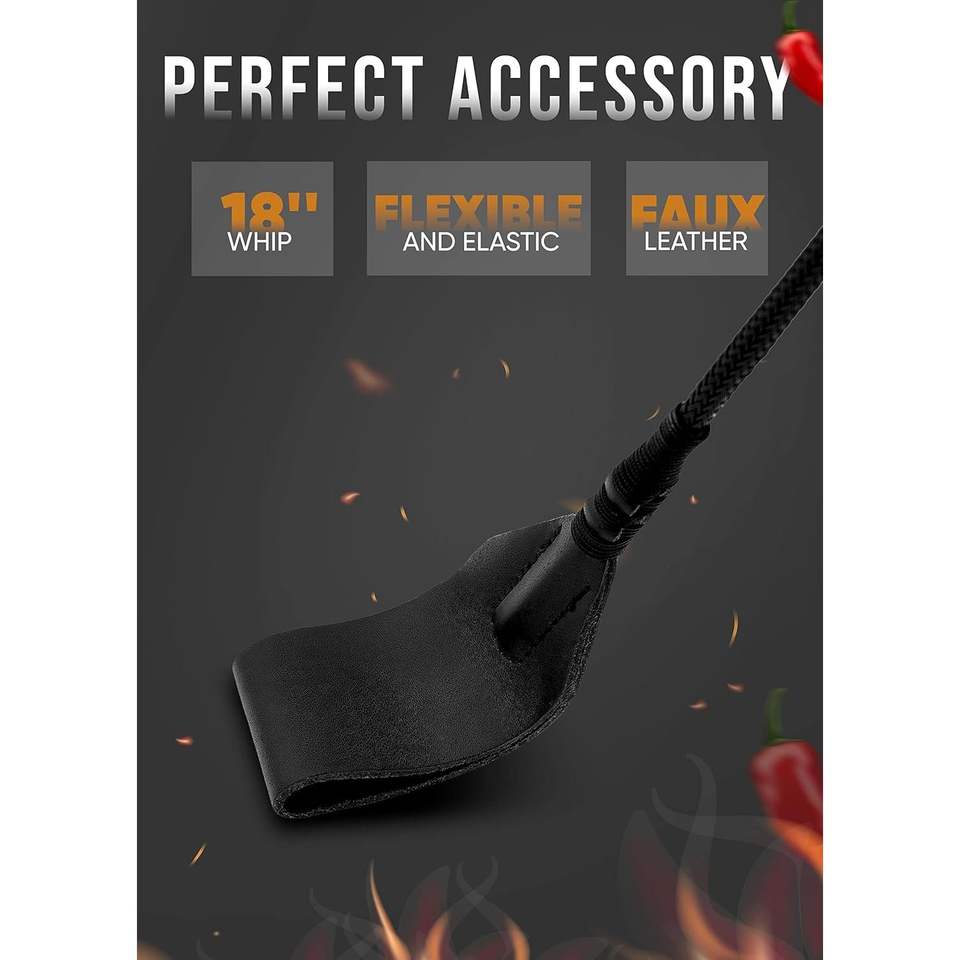 Premium Black Faux Leather 18" Riding Crop Whip for Adult Play Equestrian Sets & Accessories Paddle for Riders