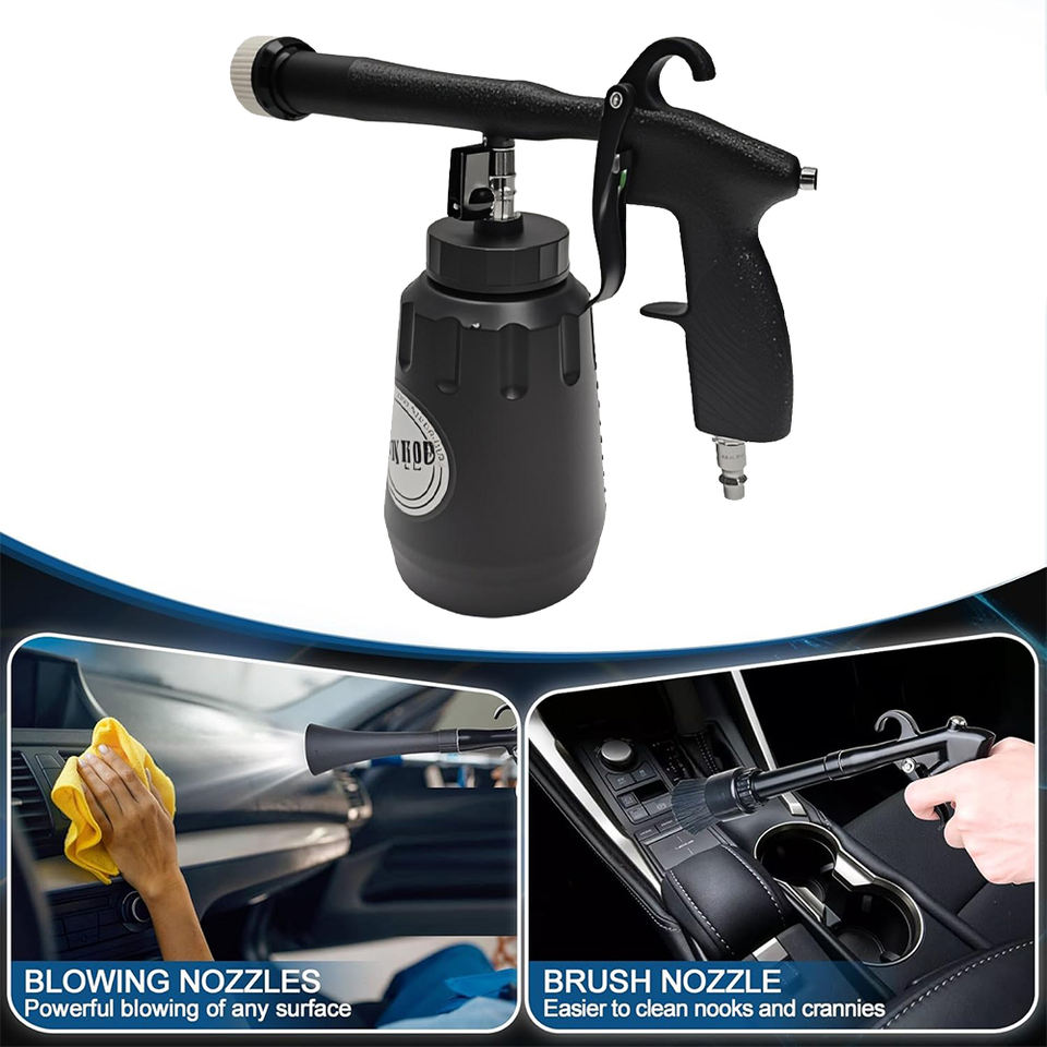Premium Black Tornador Cleaning Gun Kit Pneumatic Air Blower for Car Interior Cleans Carpets Seats Removes Dirt Debris