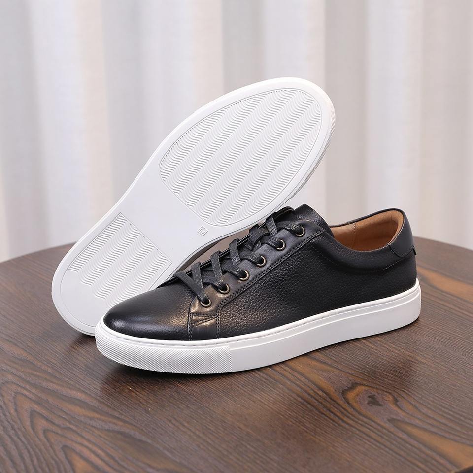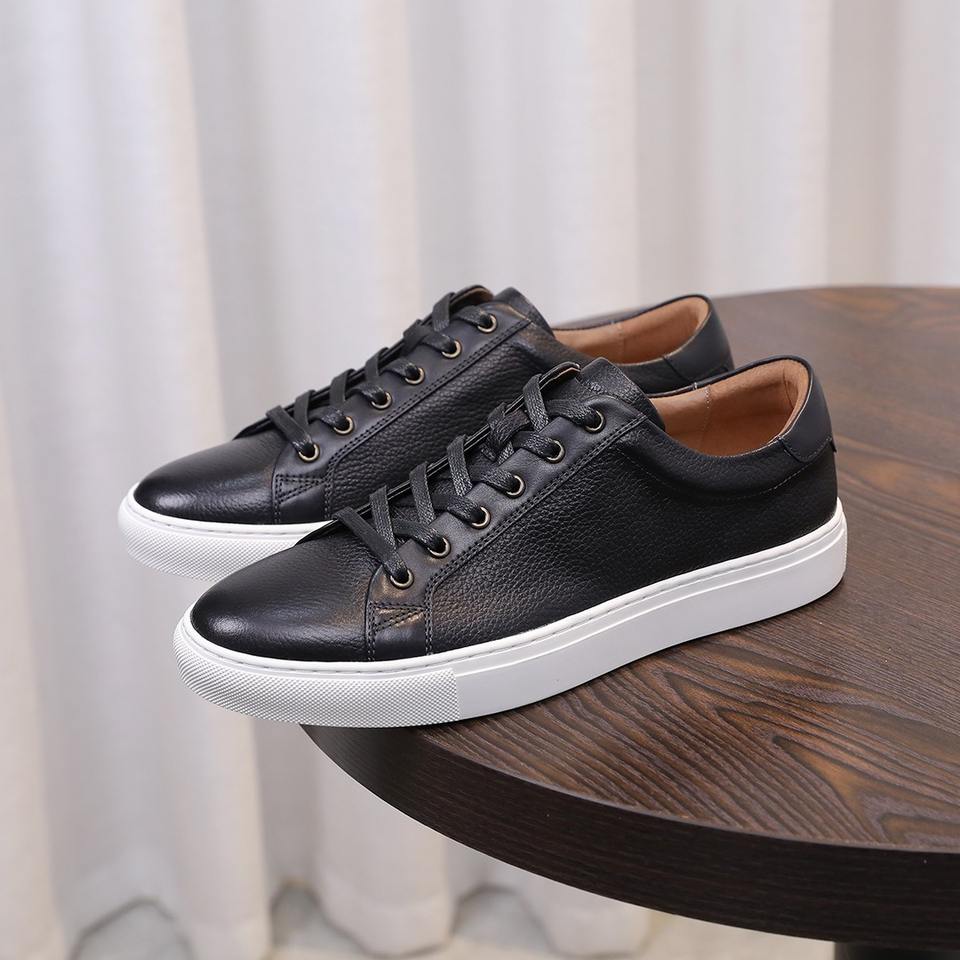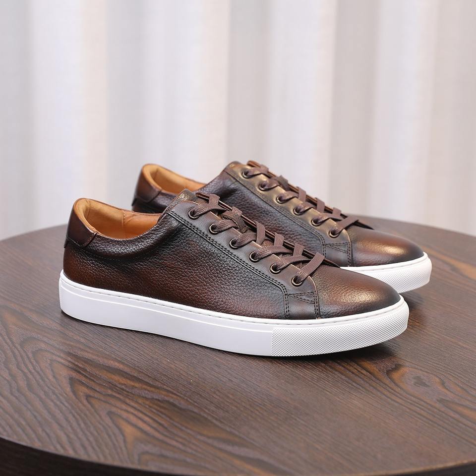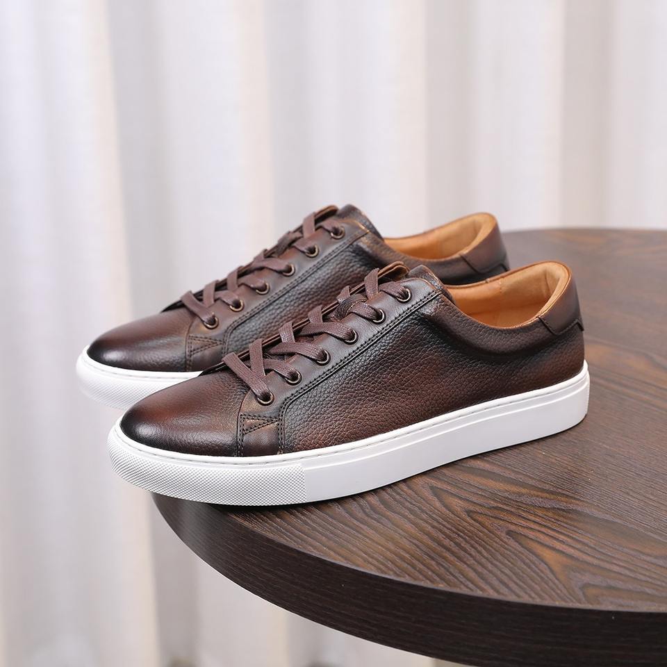 Premium Breathable Men's Leather Sneakers Top Grain Cowhide Leather Durable Casual Shoes