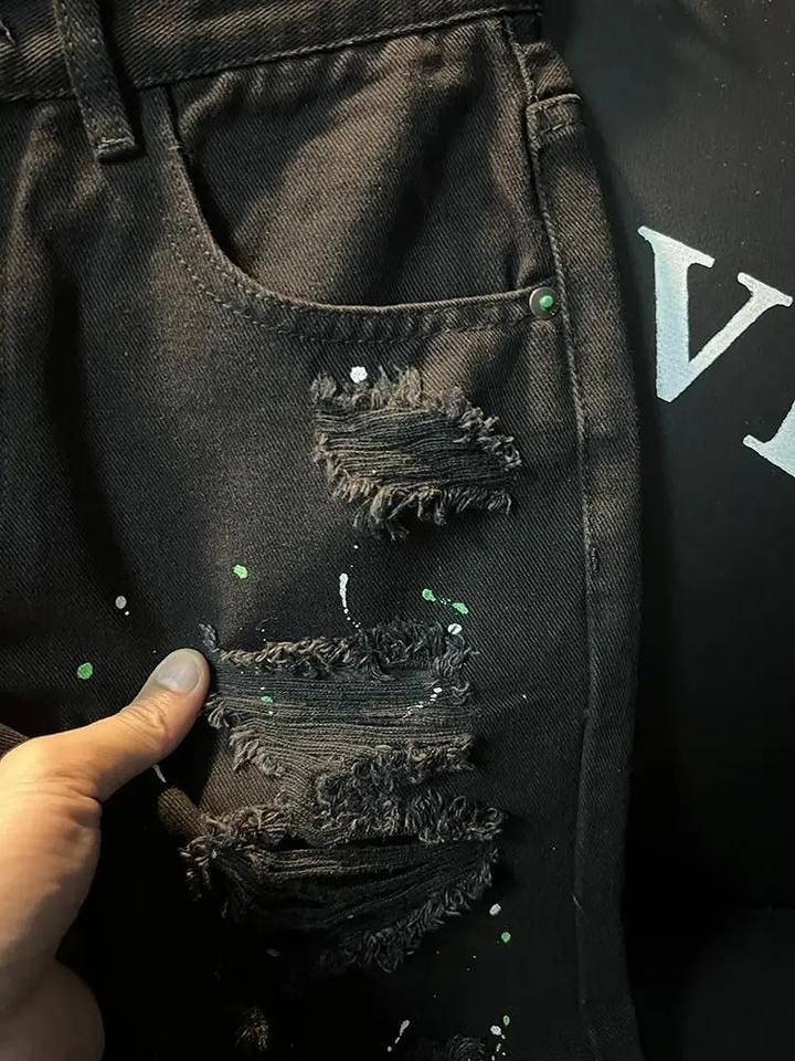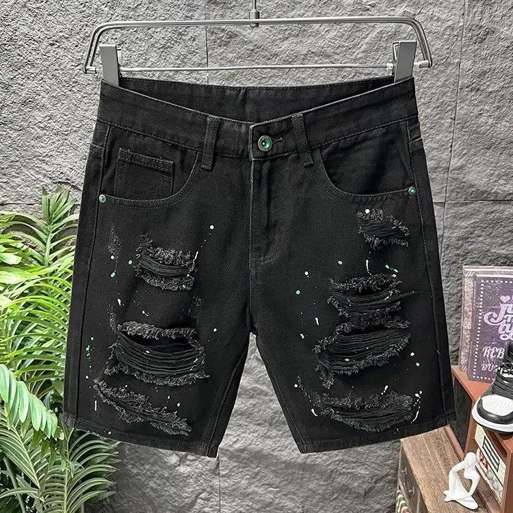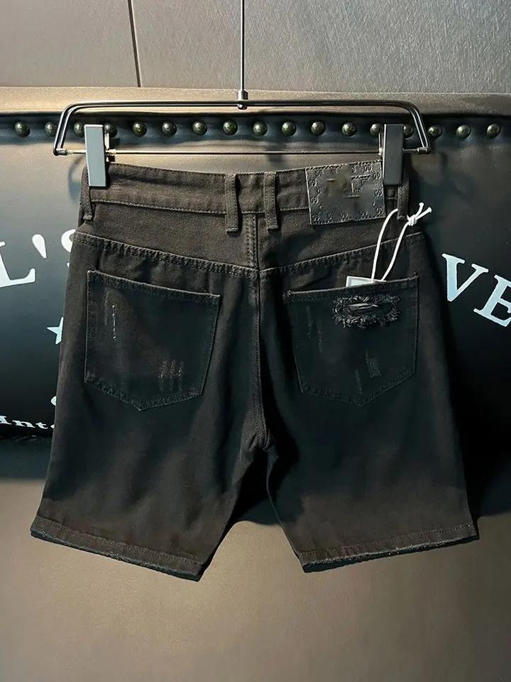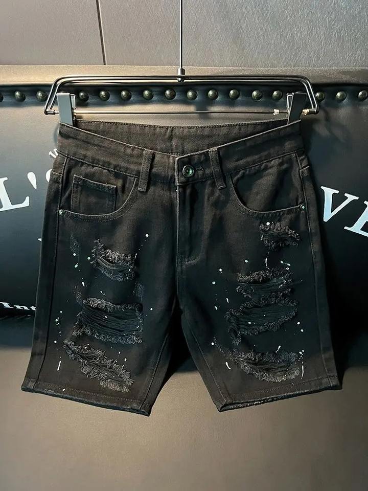 Premium Breathable Washed Denim Shorts 2025 Custom Distressed Jorts New 100% Cotton Stone Printed Men's Shorts