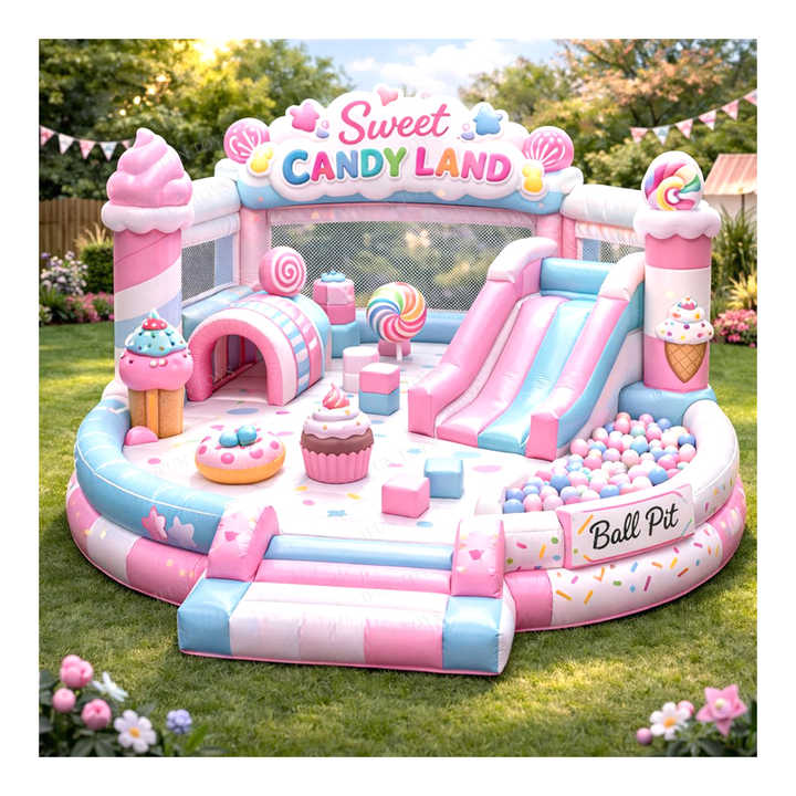 Castello Gonfiabile Premium Candy Land per Bambini, Area Giochi Morbida per Interni con Tunnel, Piscina di Palline e Scivolo in PVC, Marca IFUN