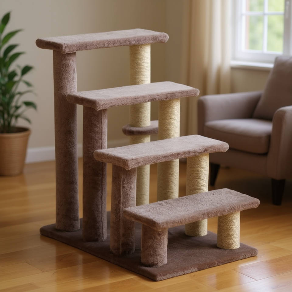 Albero per Gatti a 4 Livelli in Legno, Resistente, per Interni, Stile Lussuoso, Design Solido
