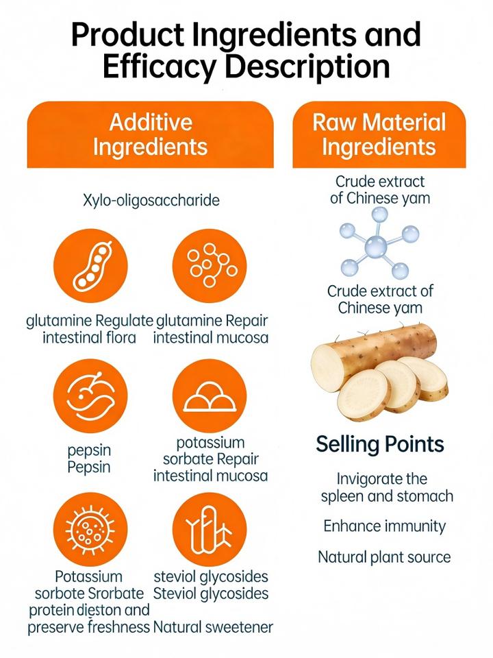 Main Ingredient:Xylo-oligosaccharide, Glutamine & Yam Extract