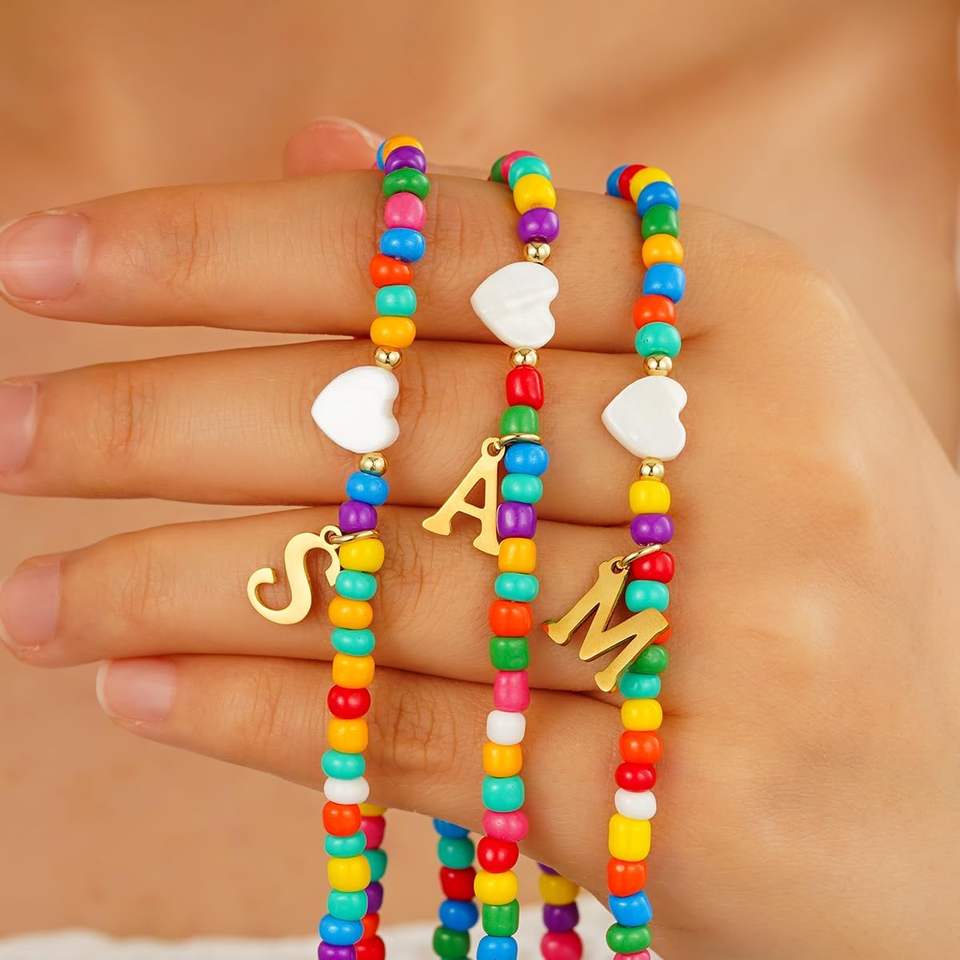 Collana con iniziale in perline colorate di alta qualità, lettera A, in lega di zinco, regalo unisex per ragazze, donne, bambini, gioielli alla moda.