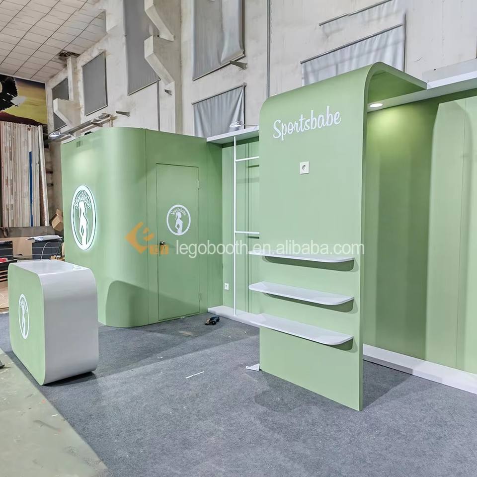 Premium Custom Trade Show Booth with Storage Room High Quality Reusable Modular Wooden Exhibition Booth for FIBO Fitness Fair