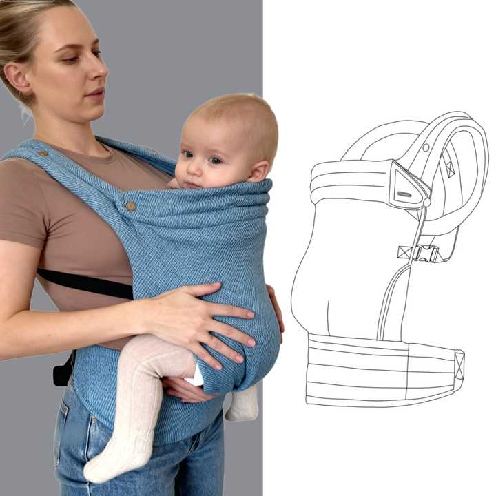 Marsupio Porta Bebè Premium in Denim, Zaino Spesso con Capacità di Carico 20kg, Marsupio a Spalla OEM con Motivo Jacquard Pied-de-Poule