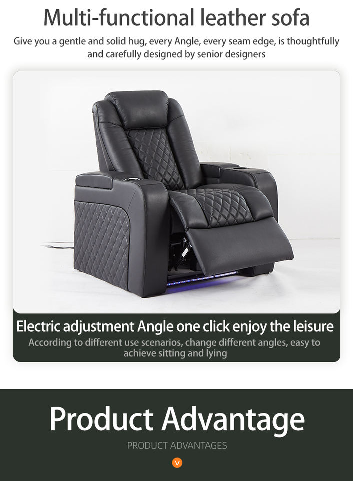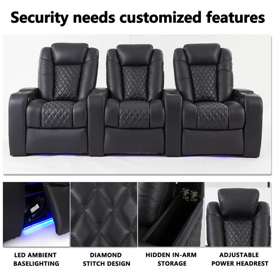 Premium Electric Cinematic Recliner Leather Sofa Set Modern Home Theater Seating Extendable Genuine Leather LED Lighting Massage