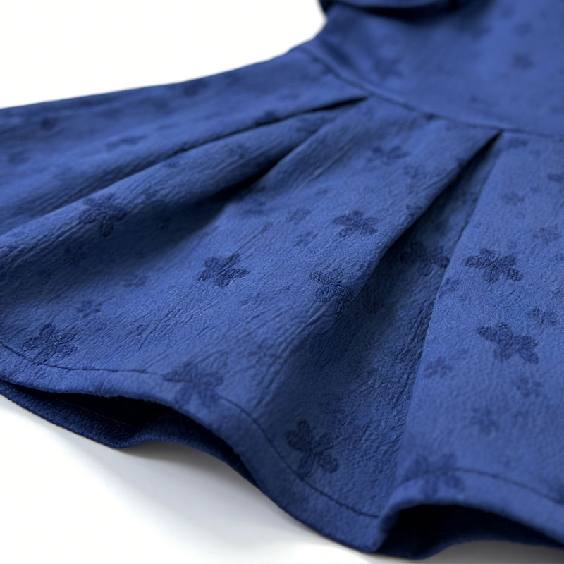 Premium Fabric Navy Jacquard Summer Girls' Dress One-Side Oversized Bow Waist-Cinched Flared Skirt ODM Service