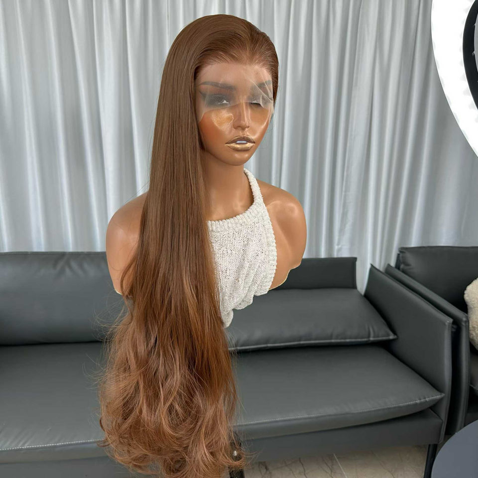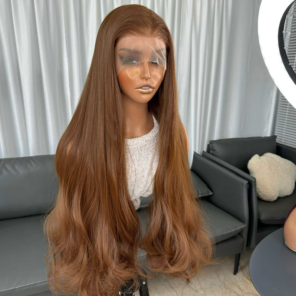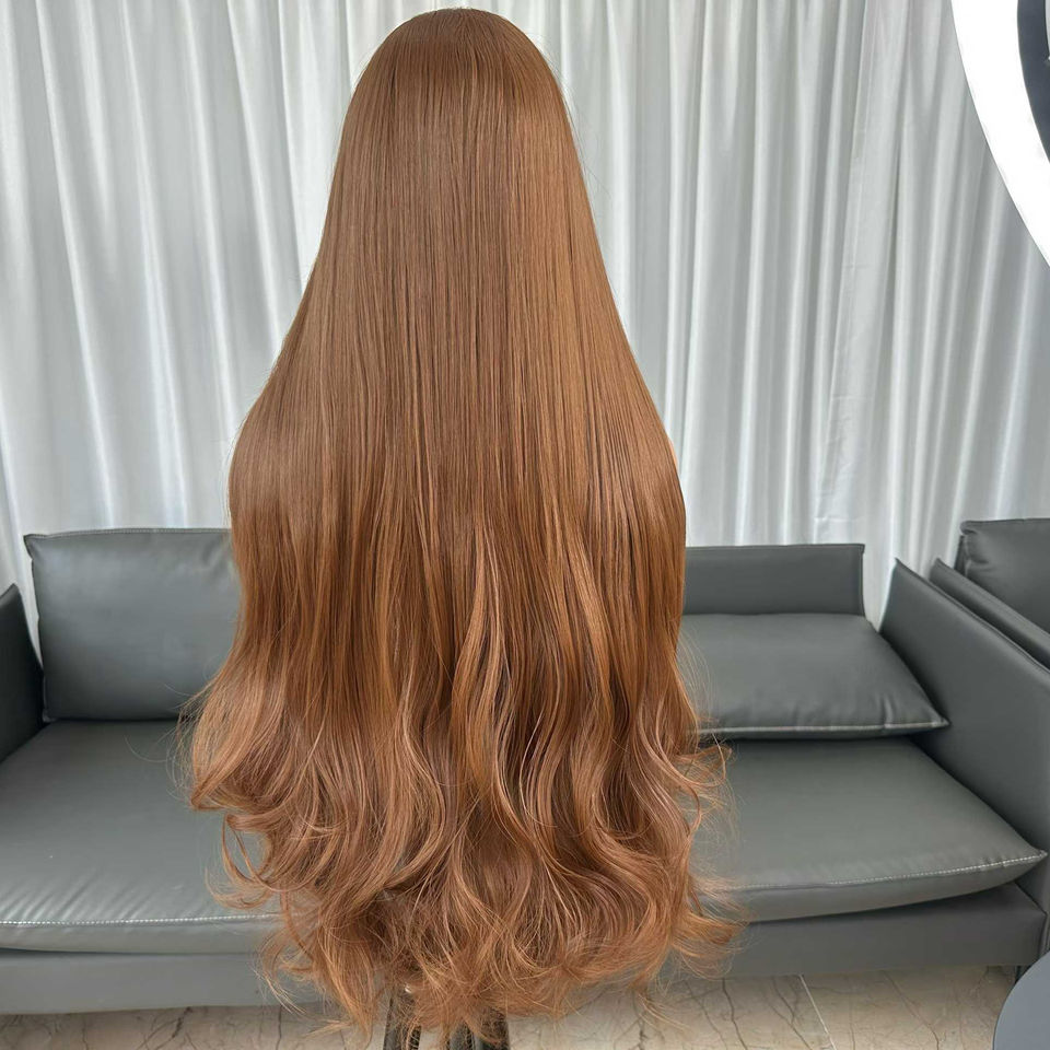 Parrucche Premium in Fibra Resistente al Calore 6*13 HD con Pizzo Trasparente, Onda Morbida Sintetica Color Rame per Donne di Colore, Vendita all'Ingrosso