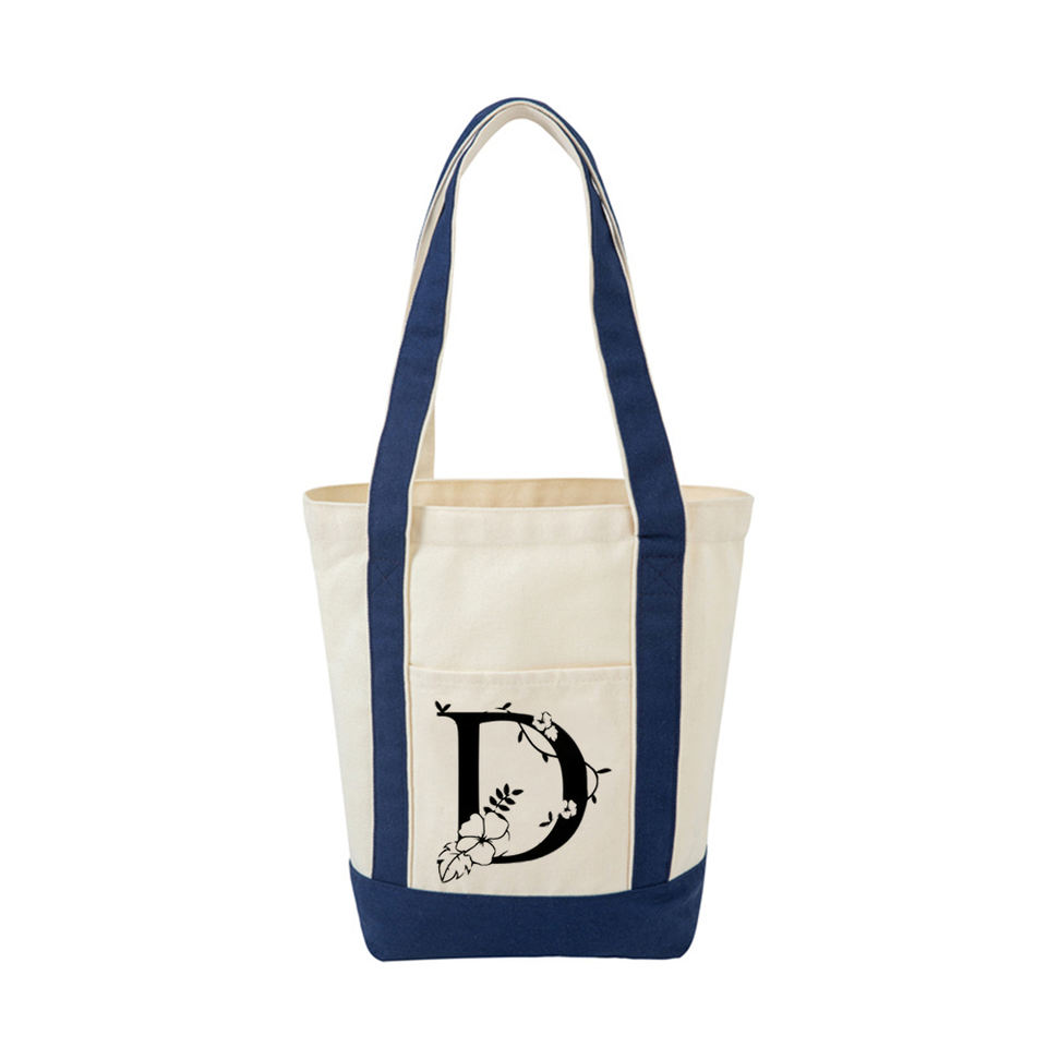Borsa premio in tela pesante Patchwork bianco in tela di cotone blu scuro borsa della spesa ricamata Tote da spiaggia iniziale in tela