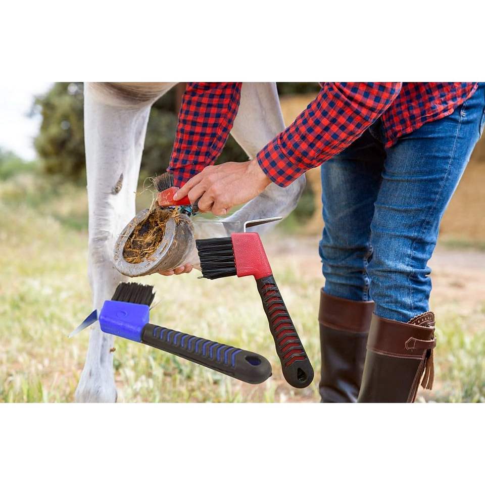 Premium Horse Brush Horse Hoof Pick Brush Set with Soft Rubber Handle Portable Horse Care Product Random Colors