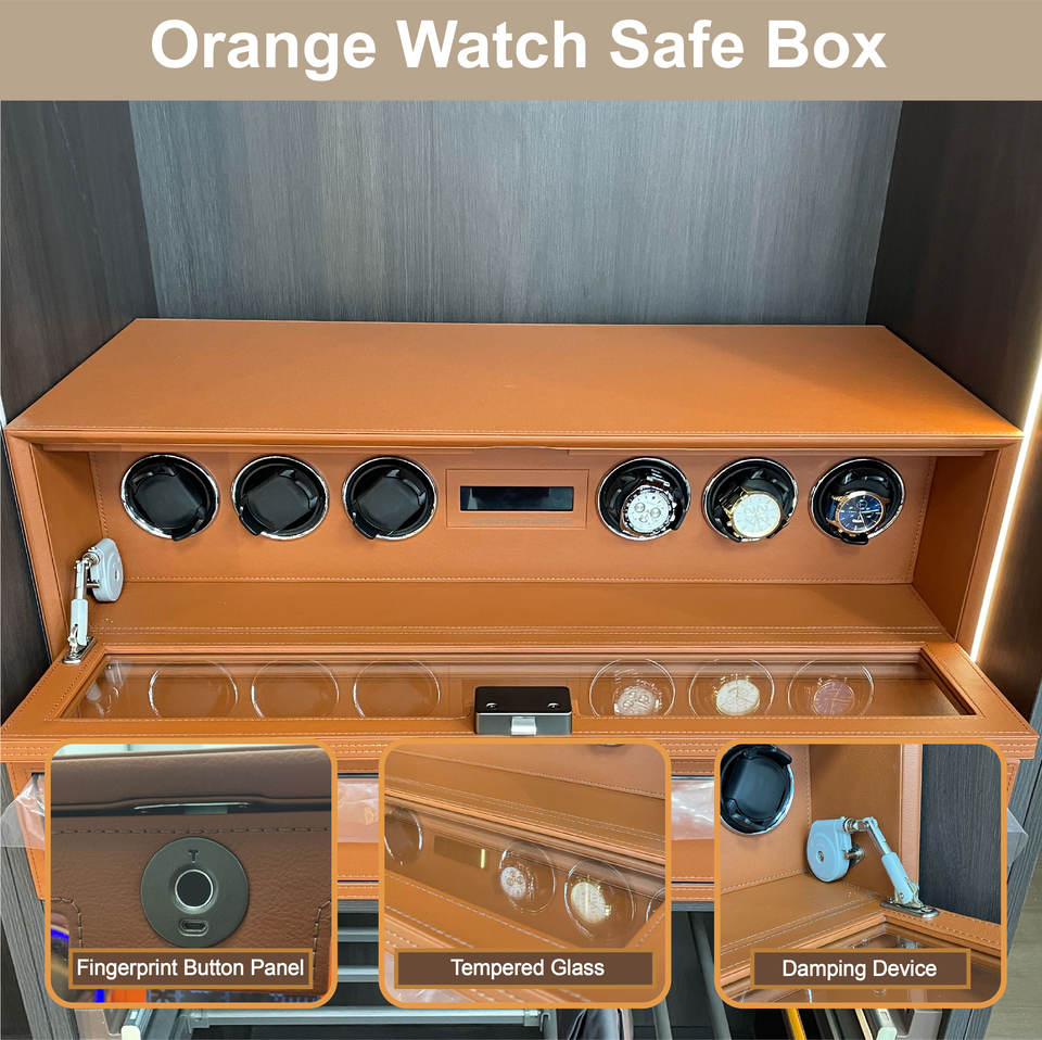 Premium Leather & Tempered Glass Watch Organizer Box with Biometric Safe Fingerprint Lock & Digital Smart Touch Control Screen