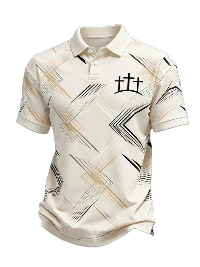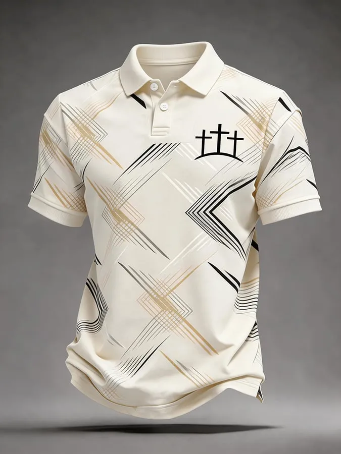 Polo da Uomo Premium con Croci Geometriche Cristiane, Traspirante, a Righe Astratte, Manica Corta, per Chiesa e Uso Quotidiano