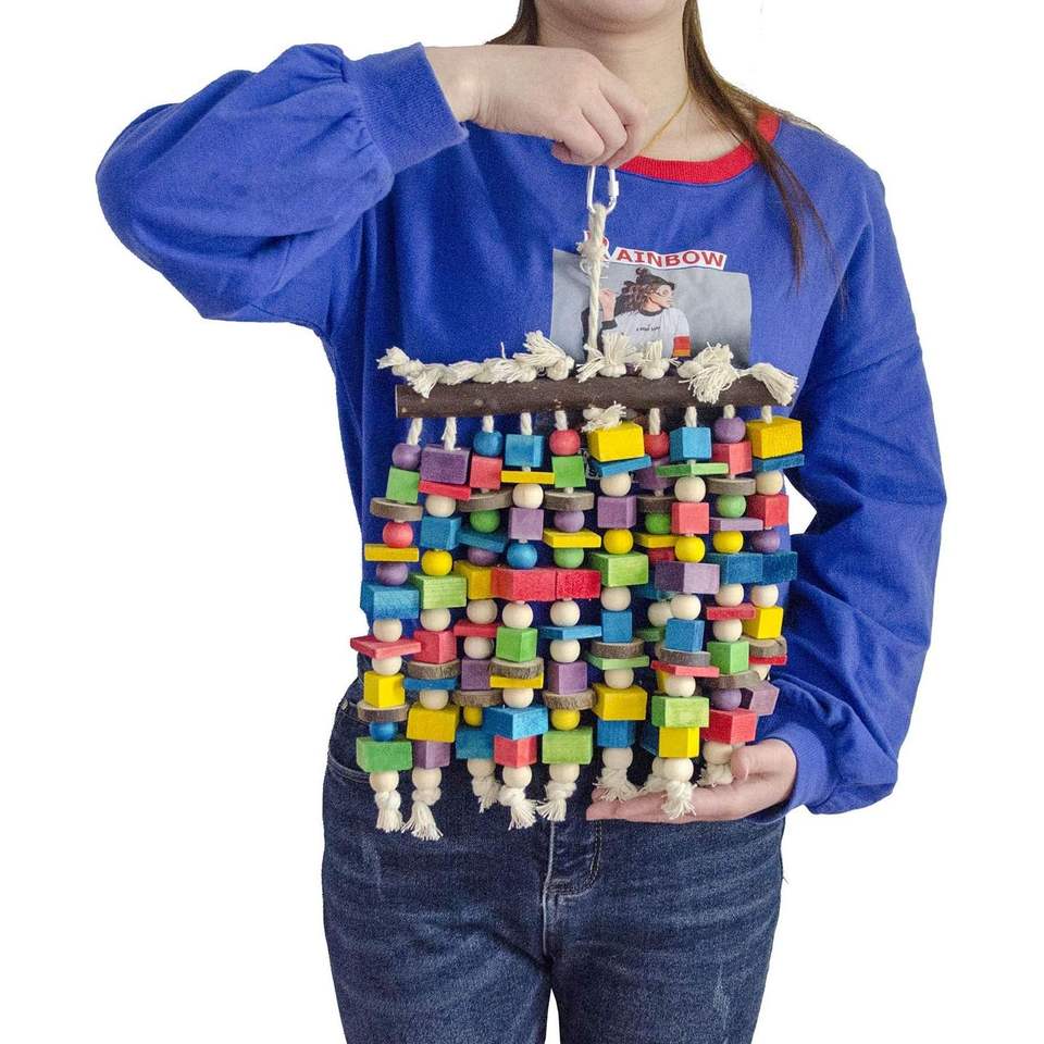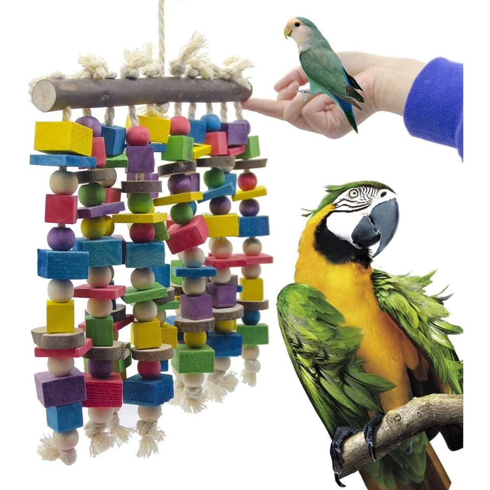 Premium Multicolored Natural Wooden Blocks Large Bird Parrot Chewing and Tearing Toys for Macaws Bird Toys