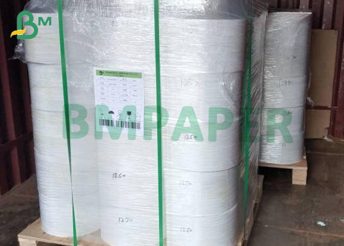 2.Rolls imballaggio avvolto con la pellicola e del mestiere di carta sul pallet di legno.
