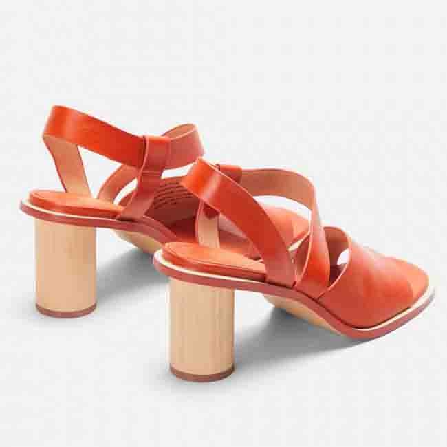 Premium OEM Manufacturer Orange Slip on Open Toe Block Wood Heel Women High Heeled Sandal