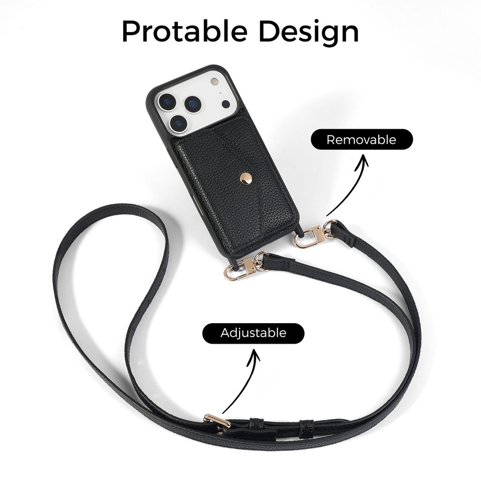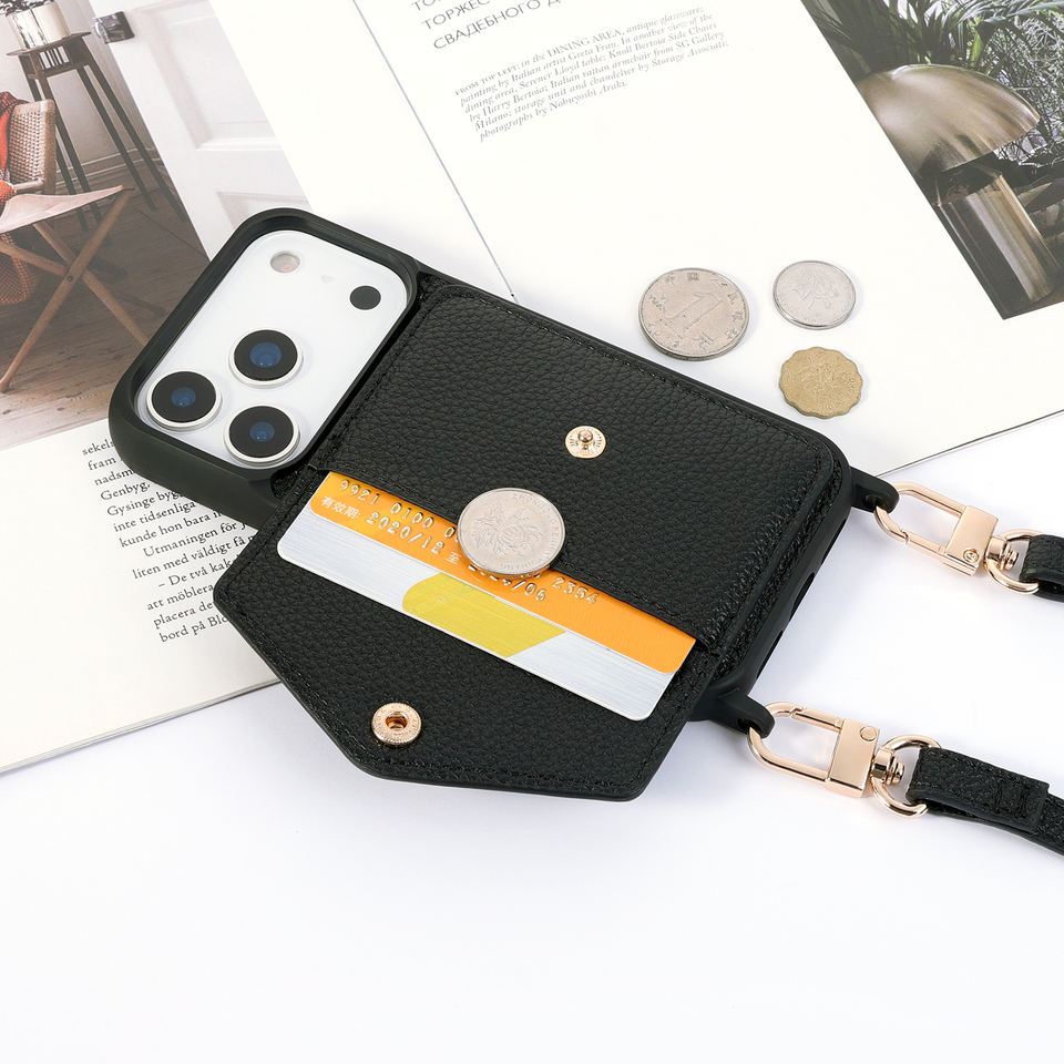 Custodia a tracolla in pelle PU premium alla moda per iPhone 17 Pro Max con laccetto e portafoglio integrato
