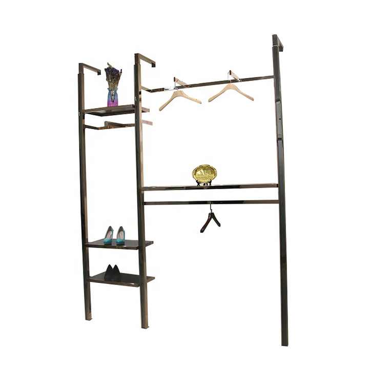 Premium Quality Decor Stainless Steel Bright Rose Display Stand Clothing Store Men's Clothes Display Shelf Advertising, Display